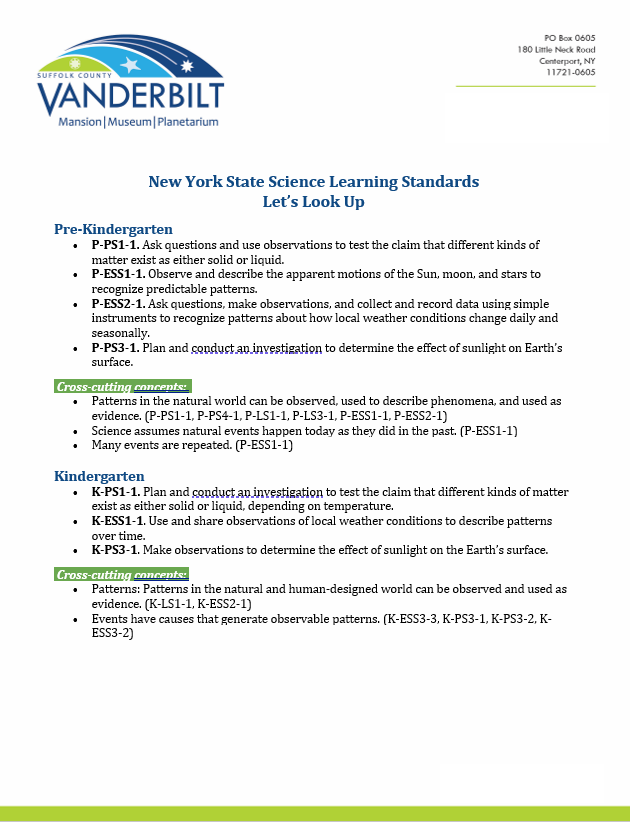 This program encourages young students to observe and explore the world around them and introduces them to the wonders of the sky. They will learn about clouds, storms, rainbows, and the colors of the sky, and how Earth’s rotation causes the changes between night and day. Learn how people looked at the night sky and drew constellations using the stars, and how some points of light aren’t stars at all. Observe the changing shapes of the Moon over time and finally take a trip through the Solar System to visit and learn about the planets.